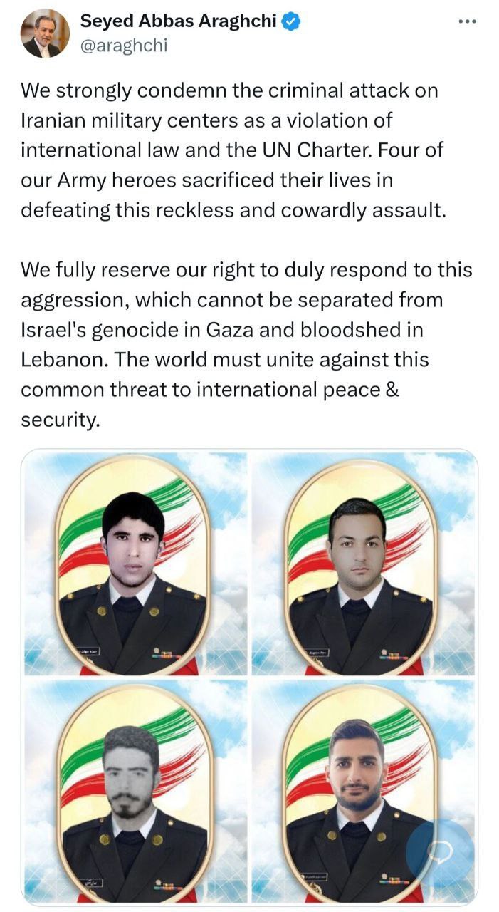 The massage of Dr. Araghchi Minister of Forigin Affairs of the Islamic Republic on X