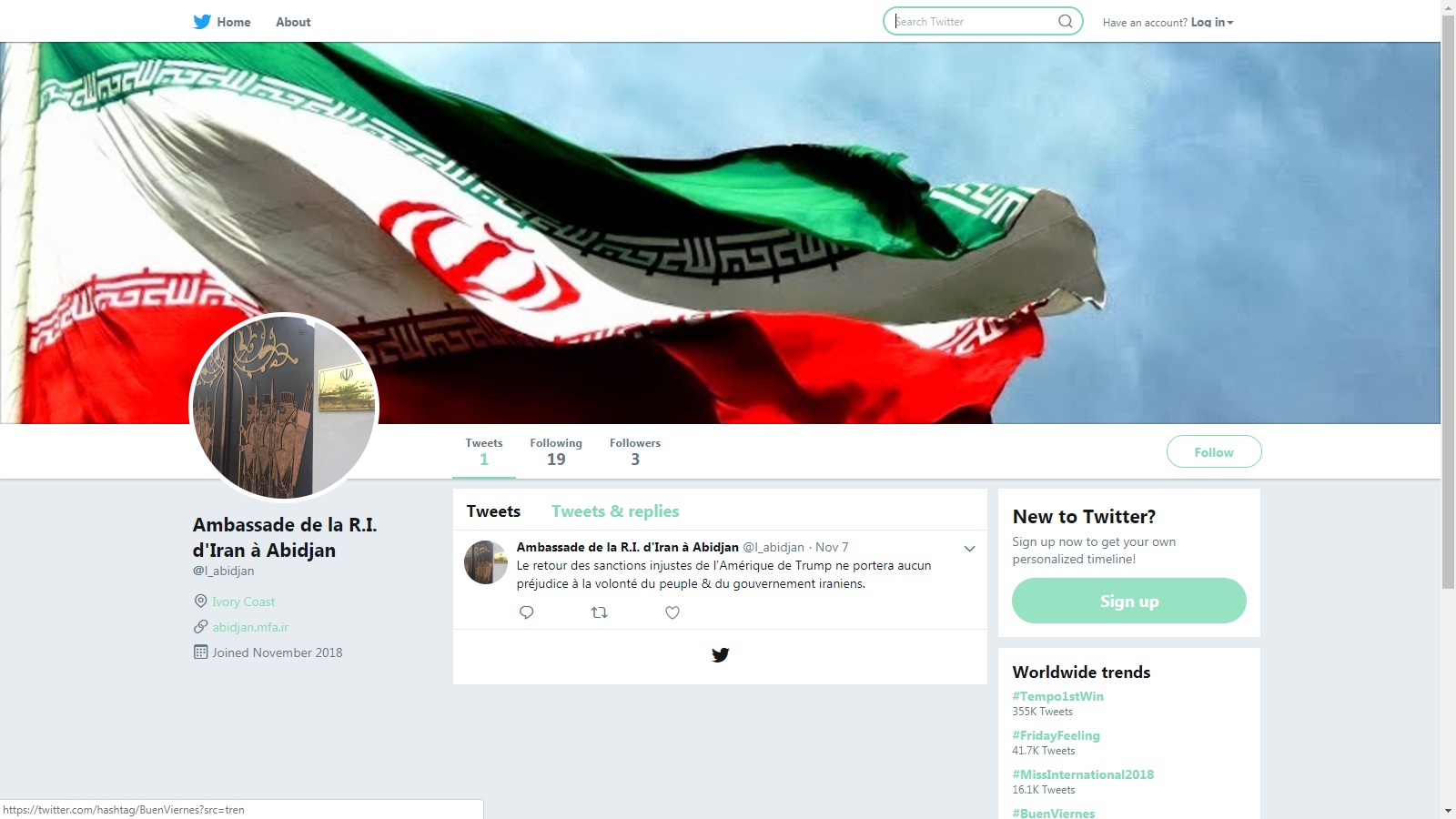 آدرس رسمی توئیتر حساب سفارت ج.ا.ایران در ابیجان: