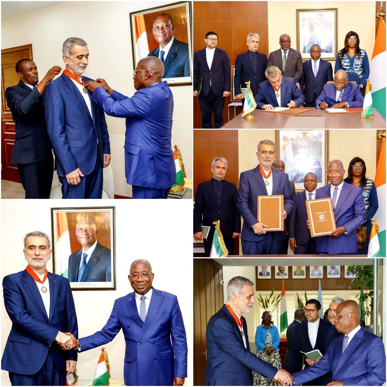 در این جلسه به پاس زحمات سفیر کشورمان در ارتقاء سطح روابط دو کشور نشان فرمانده نظم ملی جمهوری ساحل عاج به ایشان اعطاء گردید.