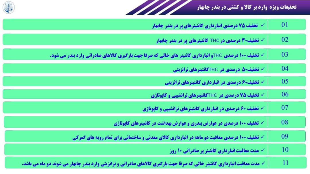 تخفیفات ویژه وارد بر کالا و کشتی در بندر شهید بهشتی چابهار